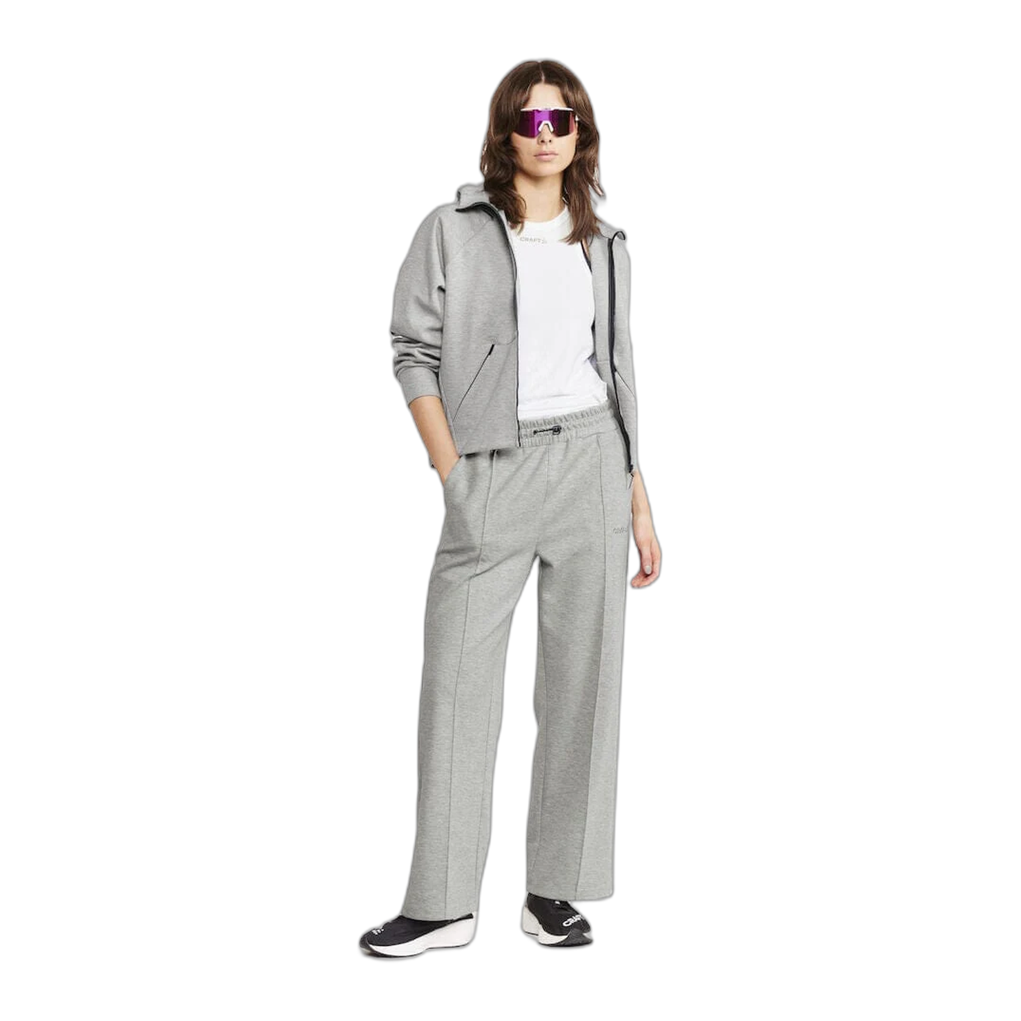 Experience ultimate comfort with the women's ADV Join Full Zip Hoodie. Made from premium 320 GSM cotton and polyester jersey, this hoodie boasts a densely knitted two-face design. The wider fit ending at the hip and slightly dropped raglan sleeves enhance your style. The plastic zipper at the front and kangaroo pocket with reverse zippers offer added convenience, while the adjustable hood with an elastic cord and stopper in a loop, lined with shell fabric, increases comfort. Embellished with the Craft embroidered logo on the left sleeve, this hoodie exudes subtle elegance.