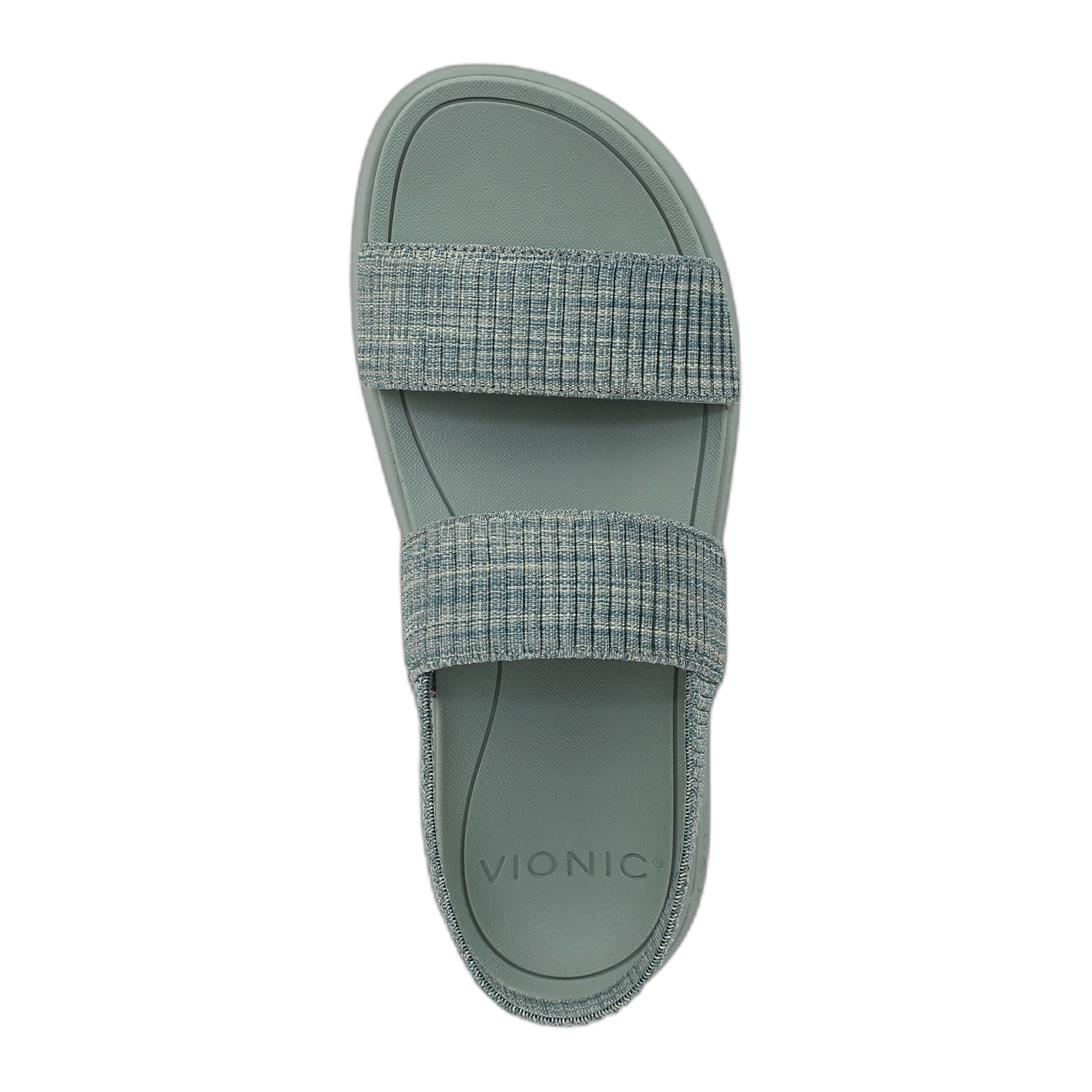 Powered by Vio Motion™ Technology to balance the whole you. The Sky Slide features a stretch-gore double-band design with a secure backstrap for a flexible, supportive fit. Built on a lightweight EVA platform, it offers all-day cushioning with a dual-density outsole: a softer molded footbed for comfort and a firmer carrier foam for stability and support. Available in medium widths, the Sky Slide delivers the perfect balance of softness and structure for wherever the day takes you. . A biomechanically designed footbed for comfort that keeps you in motion. Built-in VIO MOTION Technology footbed featuring contoured arch support, with shock-absorbing cushioning, deep heel cup to provide stability, and forefoot flexibility. The exclusive alignment technology balances the whole you.