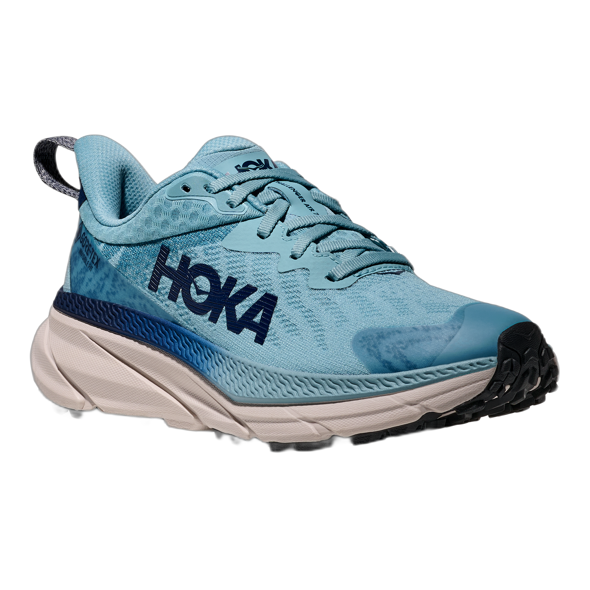 Built at the intersection of road and trail, the Challenger 7 GTX has been completely reimagined from the ground up. Combining a simplified mesh upper with a soft new foam, HOKA increased the stack height for a plusher feel and added GORE-TEX Invisible Fit for enhanced protection in inclement weather. Inspired by gravel tires, HOKA cued up smaller, tightly spaced lugs in center and larger, more aggressive lugs at the perimeter designed for improved traction on uneven terrain.