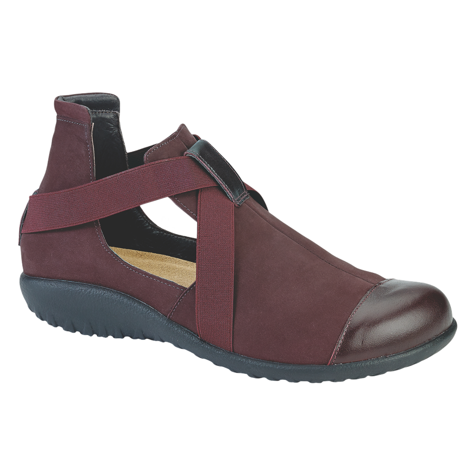 The Rakua's combination of leather and nubuck with stretchy strap make it a simple yet versatile shoe. It is perfect for any occasion or outfit. The Rakua also has Naot's removable, anatomic cork & latex footbed is wrapped in pampering suede and molds to the shape of the foot with wear. The Koru Collection features 1" polyurethane sole which is extremely lightweight, durable & slip resistant. This collection uses a hand-sewn Strobel construction making it strong and extremely flexible.