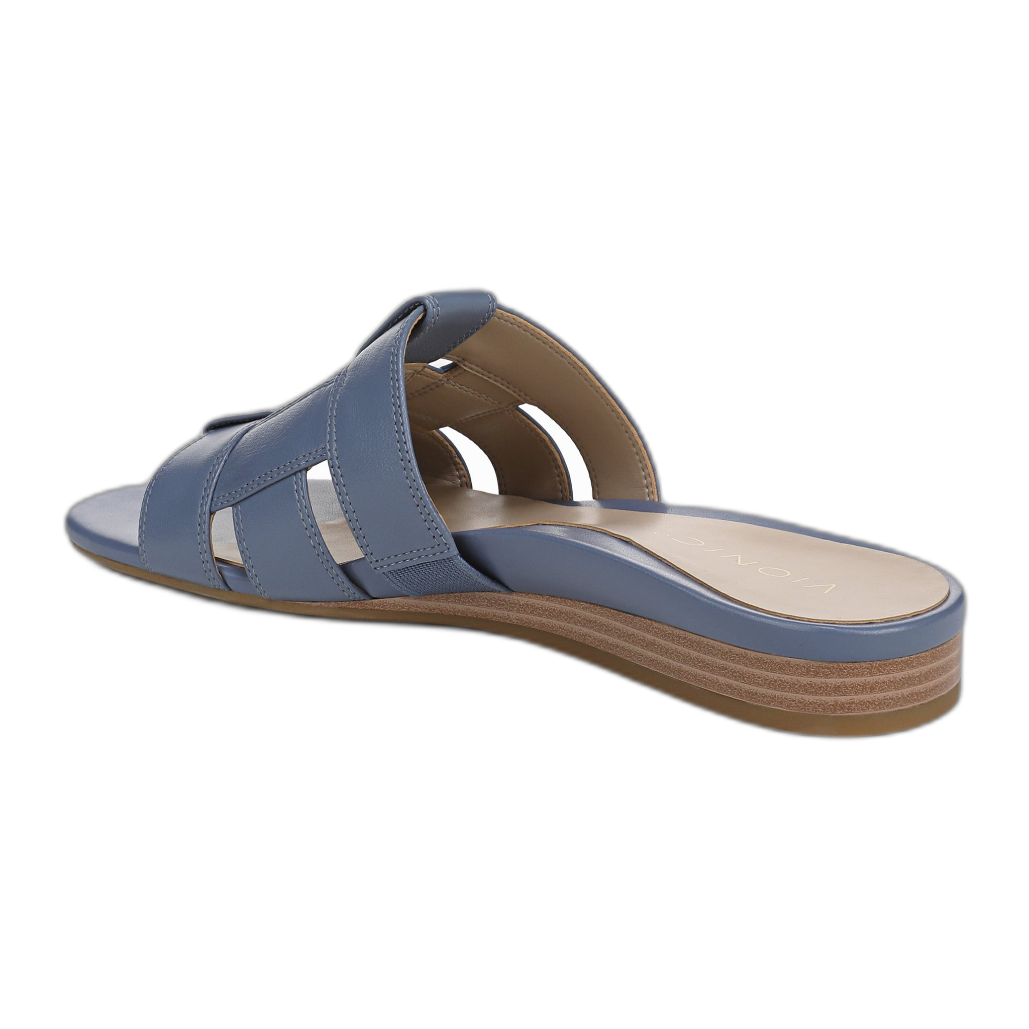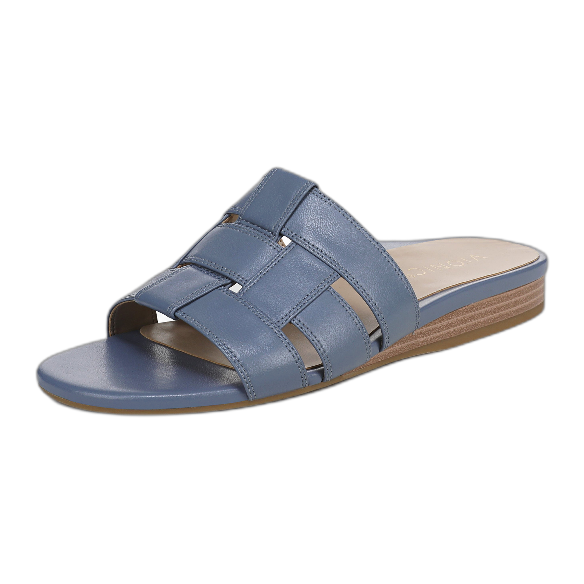 Powered by Vio Motion Technology to balance the whole you. A fresh update to Vionic's Grisa slide construction, the Glendora features a stacked sliver wedge, cushioned PP insole, and durable TPR outsole. The woven one-band upper with internal gore ensures a flexible, comfortable fit. Versatile and easy to wear, the Glendora Slide dresses up or down for any occasion. . A biomechanically designed footbed for comfort that keeps you in motion. Built-in VIO MOTION Technology footbed featuring contoured arch support, with shock-absorbing cushioning, deep heel cup to provide stability, and forefoot flexibility. The exclusive alignment technology balances the whole you.