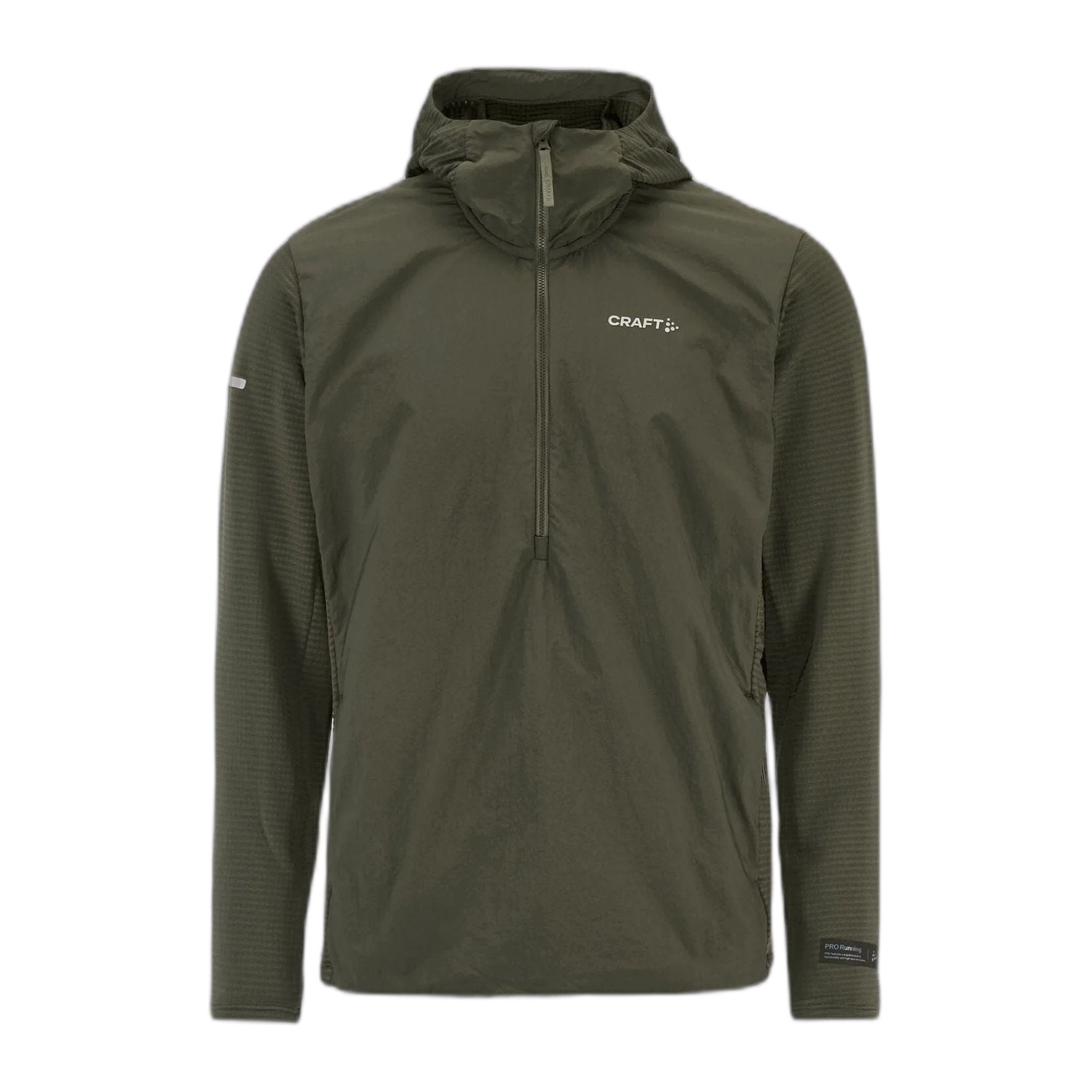 Stay warm and dry in style with the Men's Craft Sportswear SubZ Light Hood Sweater. This advanced hybrid popover features a comfortable jersey material with a grid-textured back and a durable wind and water repellent polyester front. The Primaloft brushed lining provides exceptional insulation. With convenient thumb grips at the sleeve endings and reflective prints for enhanced visibility, this sweater is both practical and stylish. The short zip at the front allows for easy wear and adjustability, making it perfect for athletes who need reliable gear for their outdoor adventures.