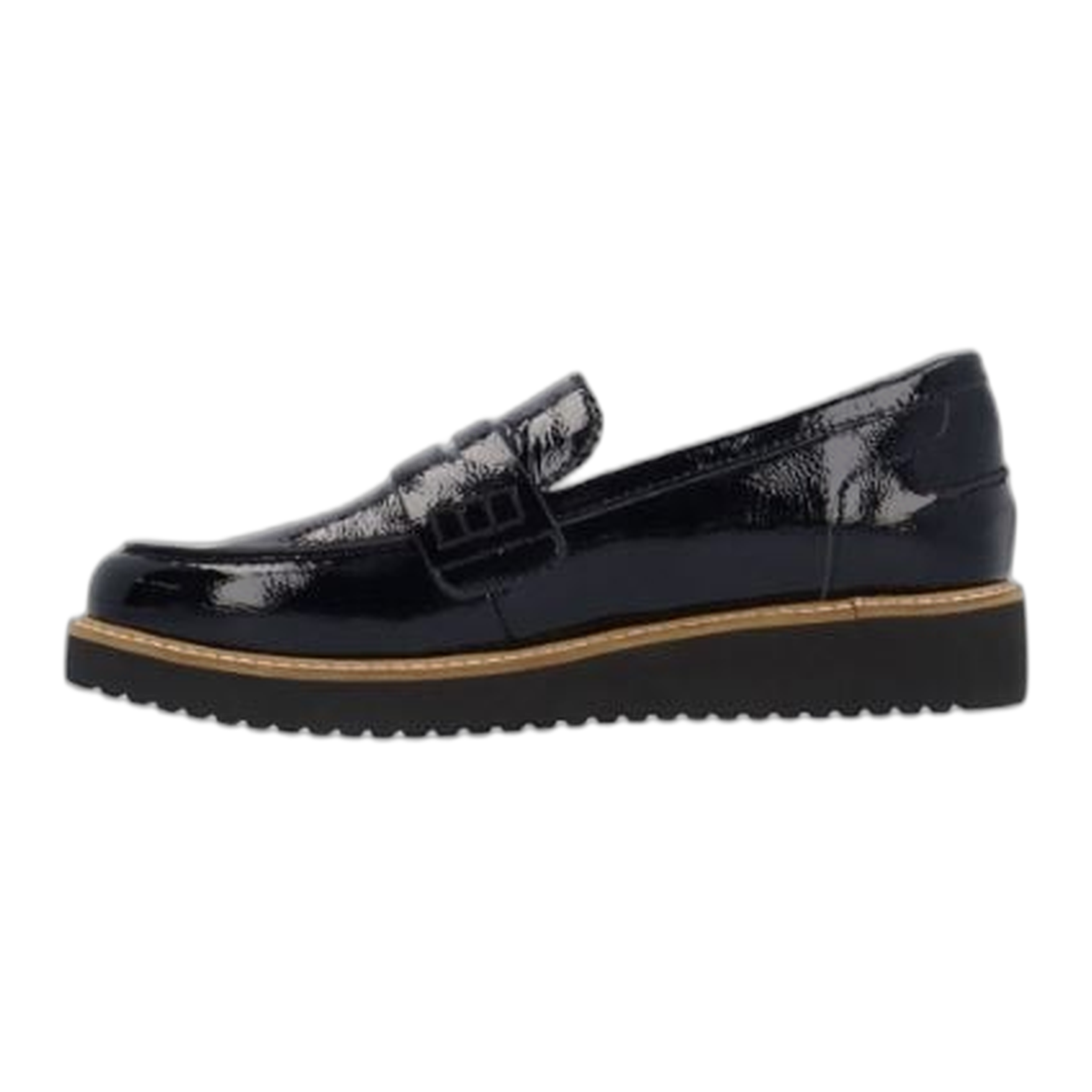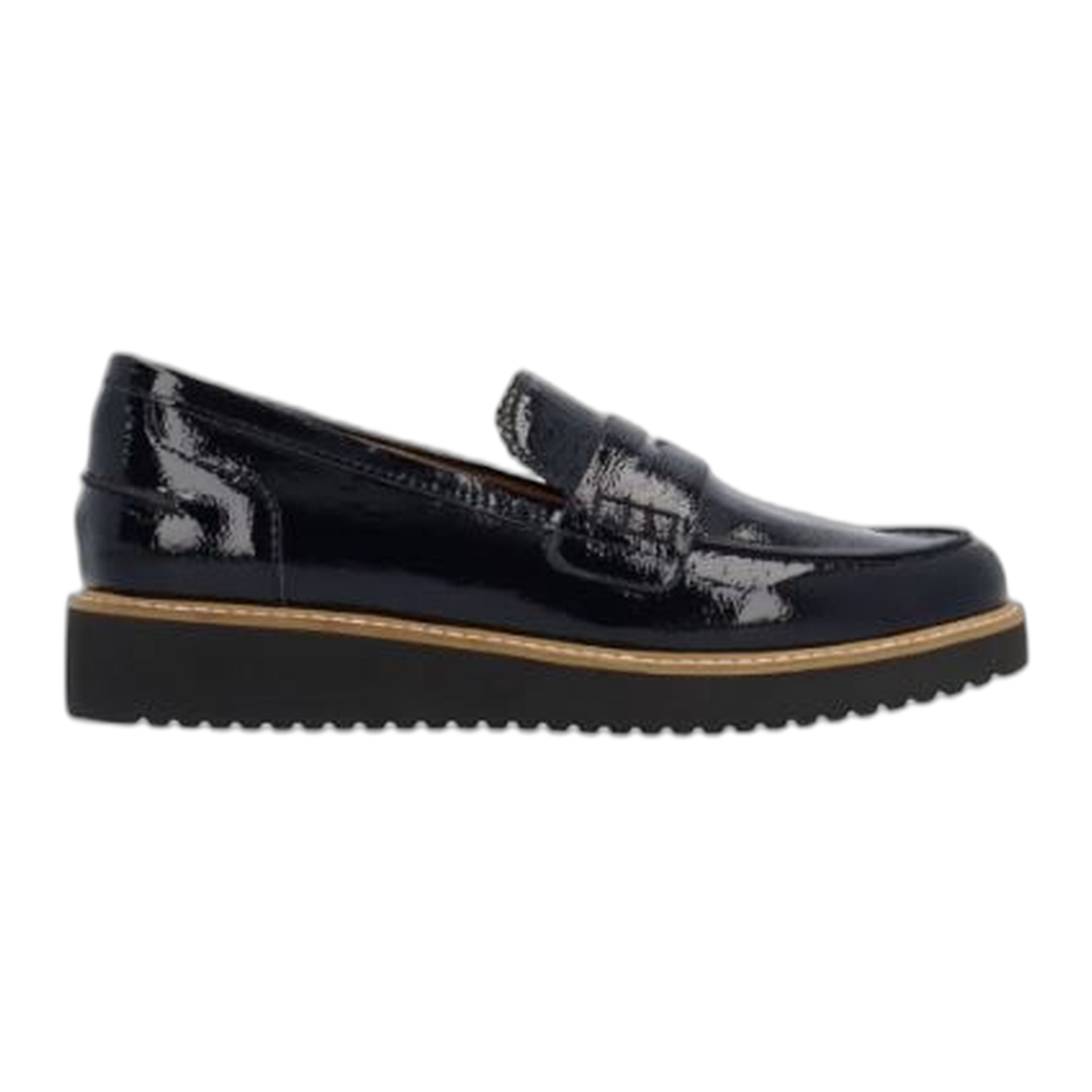 This leather round toe loafer has a memory foam insole, leather lining and synthetic outsole. This slip on shoe is on a 1.25 inch heel.
