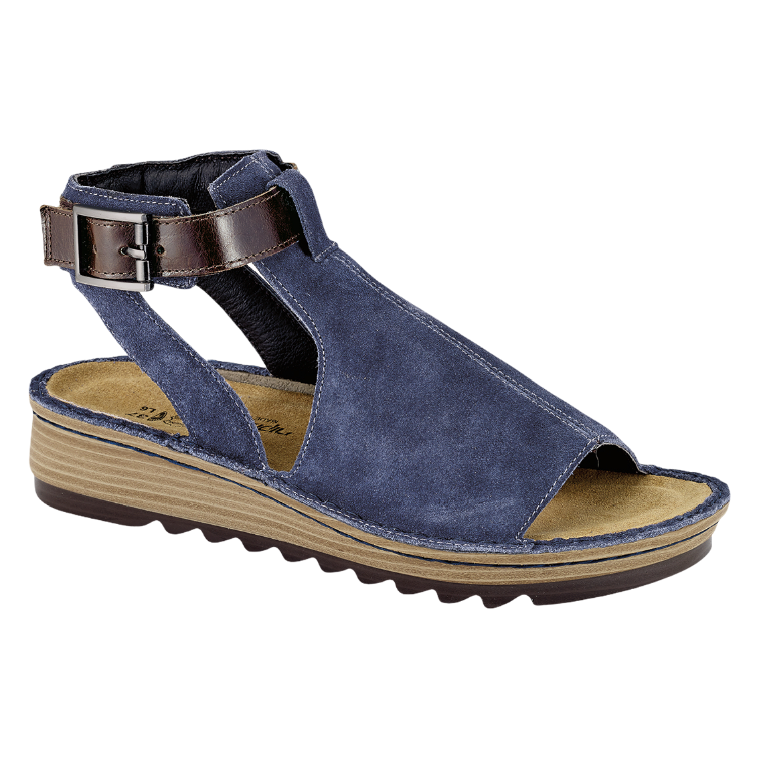 The Verbena is a beautiful transitional sandal with a full padded upper. The contrasting ankle strap features a faux buckle hook & loop closure for accessibility & adjustability. Naot's removable, anatomic cork & latex footbed is wrapped in pampering suede and molds to the shape of the foot with wear. The Bloom Collection features a 1.75'' polyurethane sole which is extremely lightweight, and durable.