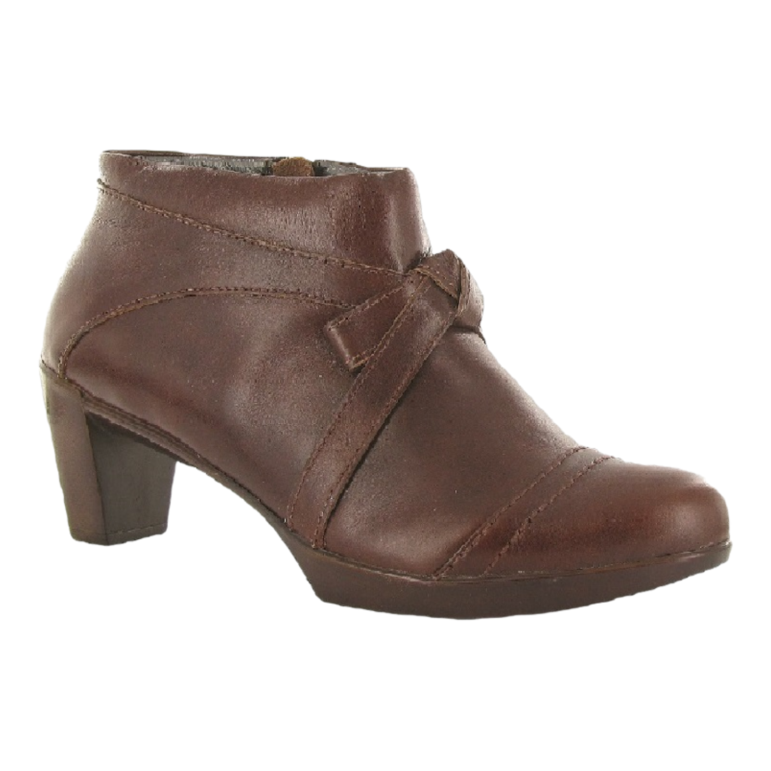 The Vistoso is the perfect bootie that offers a zipper for accessibility. This style has a slightly padded heel cup for support & extra comfort. Naot's anatomic cork & memory foam footbed is wrapped in leather & microfiber and molds to the shape of the foot with wear. This collection uses a hand-sewn Strobel construction making it strong and extremely flexible. The Prima Bella Collection features a 2 3/4"" polyurethane sole with a metal shank.