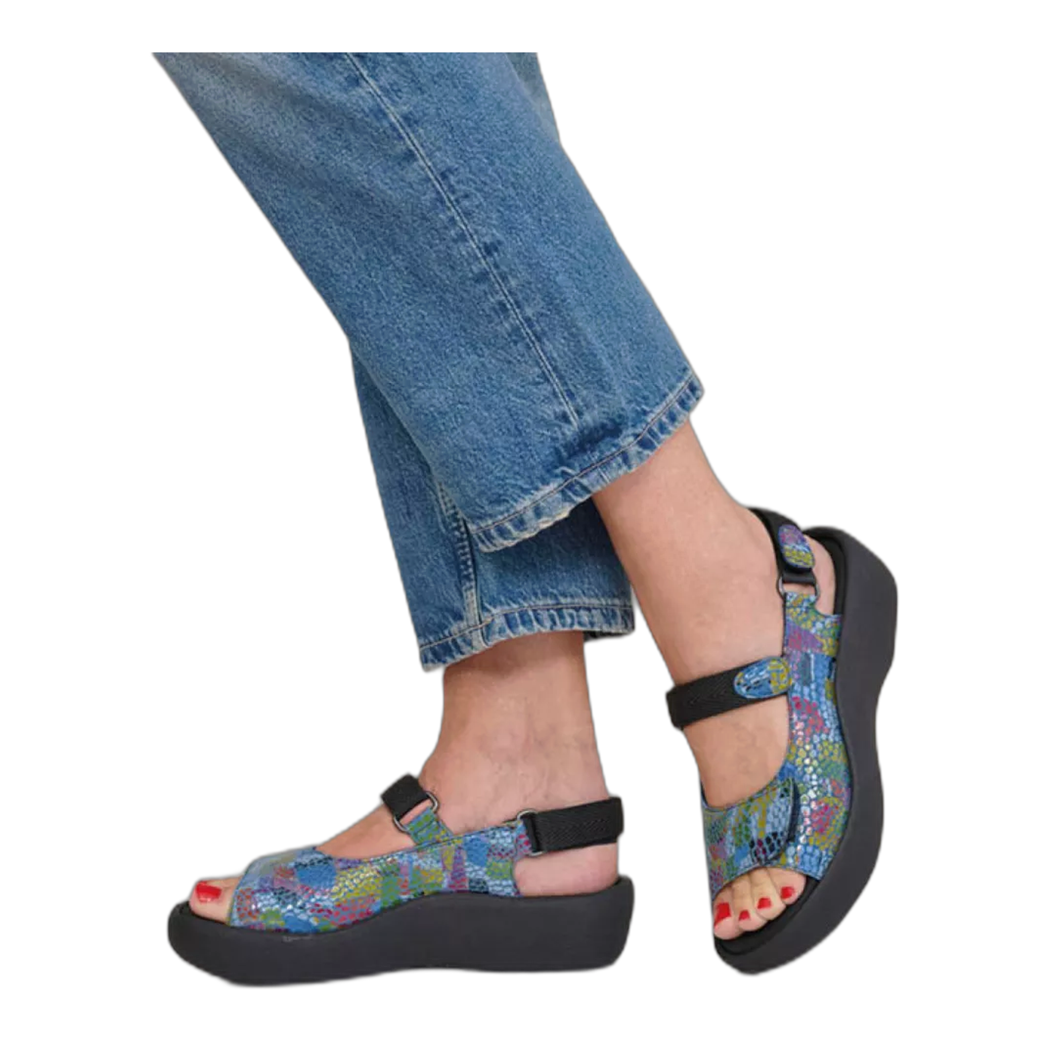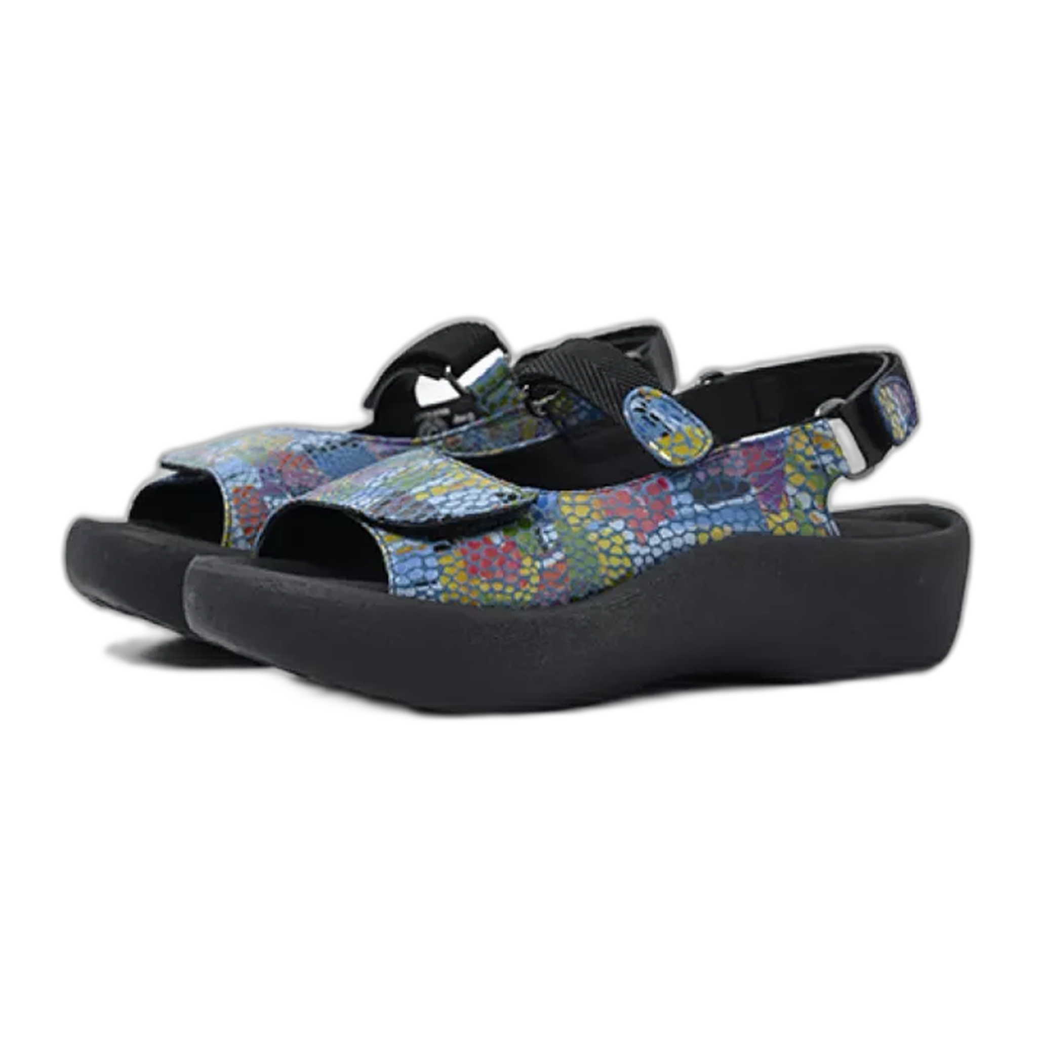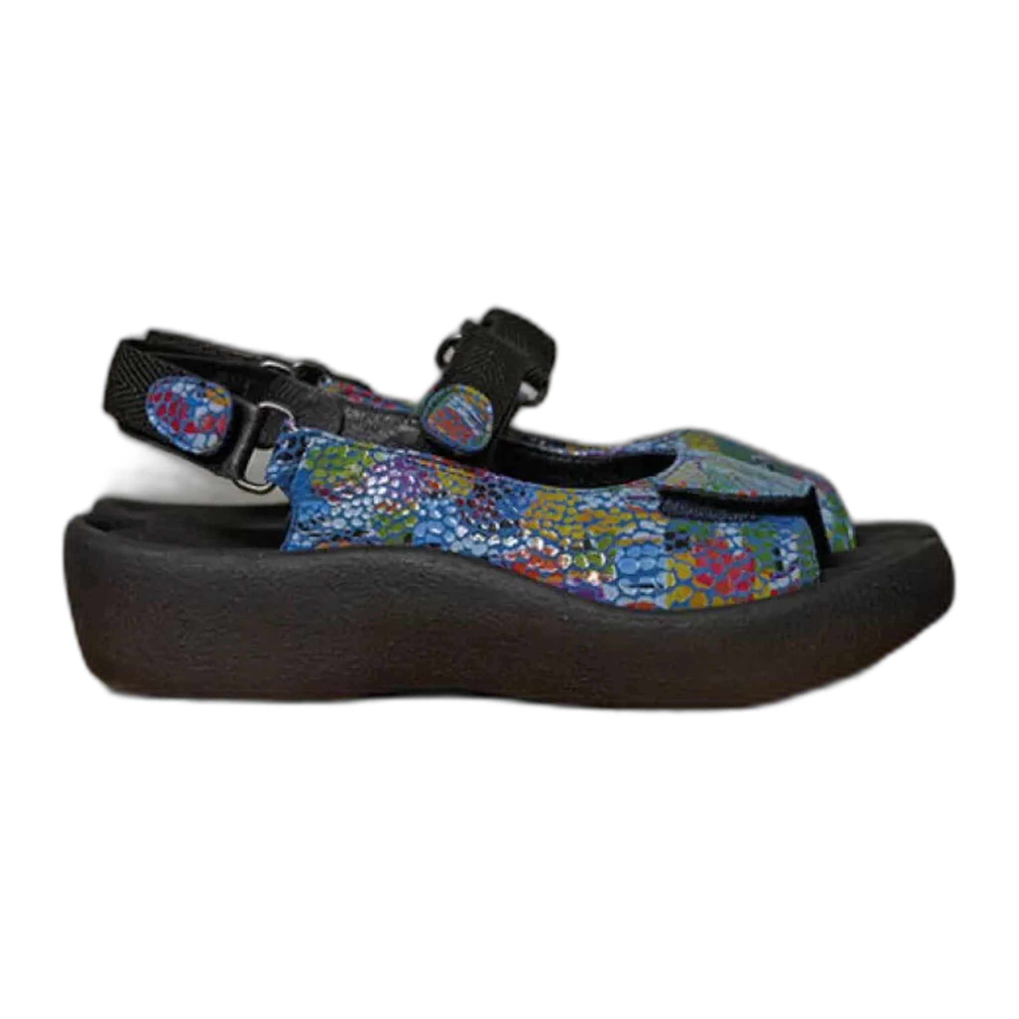 The Jewel is Wolky's most popular sandal that fits almost every foot. It's not for nothing that it's been a favorite for 25 years! The Jewel was specially designed to have a sturdy foundation and a fuller, supportive upper to help stabilize your foot. Resembling an old-fashioned clog, the sole is constructed of polyurethane which encourages a good settlement of the foot thanks to its shock-absorbing properties. It has three velcro closures; on the forefoot, on the instep, and around the ankle for optimal protection and adjustability. The sandal also comes with a soft, memory foam footbed that is removable for added customization to your foot care needs. The Jewel is available in a variety of colors and prints to ensure there is a style and color for you!
